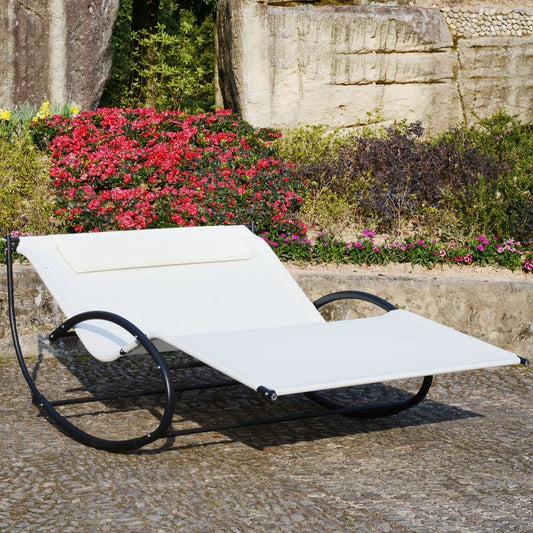 Double Hammock Chair Sun Lounger Outdoor Patio Garden Swing Rock Seat Cream White