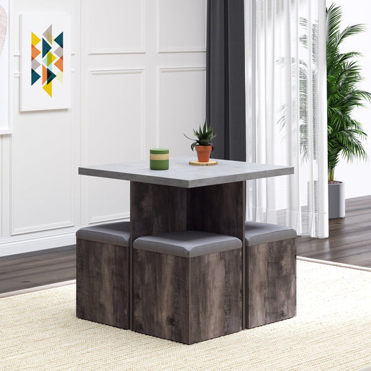 5-Piece Dining Set Garden Patio Wooden Set 4 Storage Stools Footrest Ottoman with Cushions + 1 Table S...