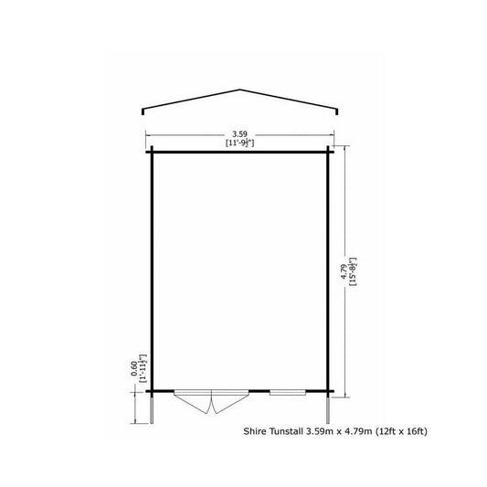 Shire Tunstall 11' 9" x 15' 8" Apex Log Cabin - Premium 44mm Cladding Tongue & Groove