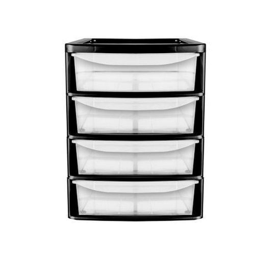 Plastic Storage Unit 4 Drawers 38 Litres - Clear & Black by Premier