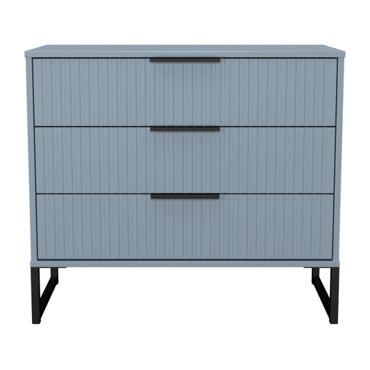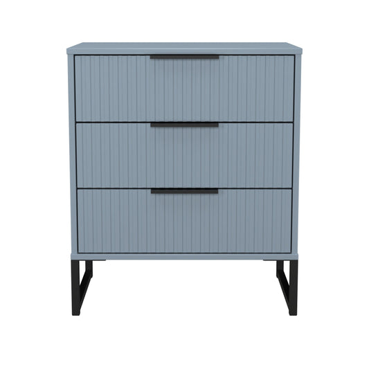 Fluted Chest of Drawers Light Blue 3 Drawers 77cm
