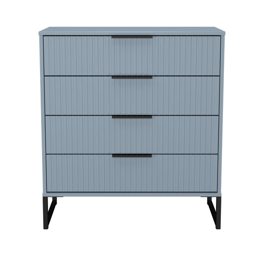 Fluted Chest of Drawers Light Blue 4 Drawers 93cm