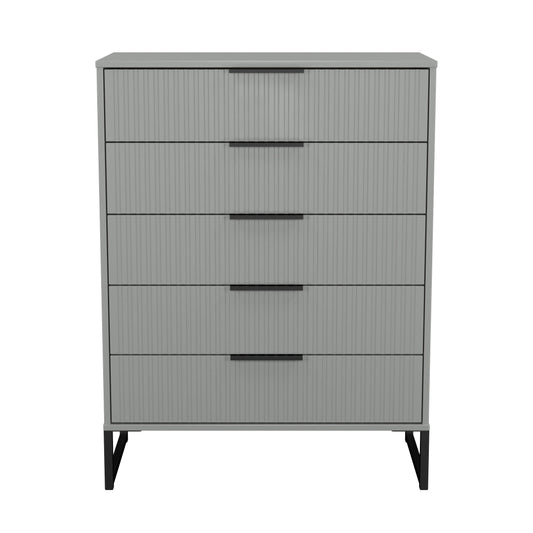 Fluted Tall Chest of Drawers Grey 5 Drawers 109cm