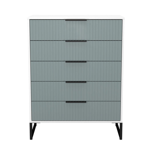 Fluted Tall Chest of Drawers Teal & White 5 Drawers 109cm