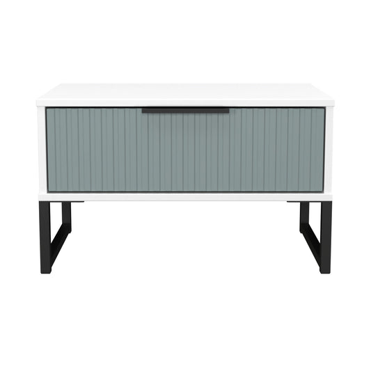 Fluted Side Table Teal & White 1 Drawer 58cm