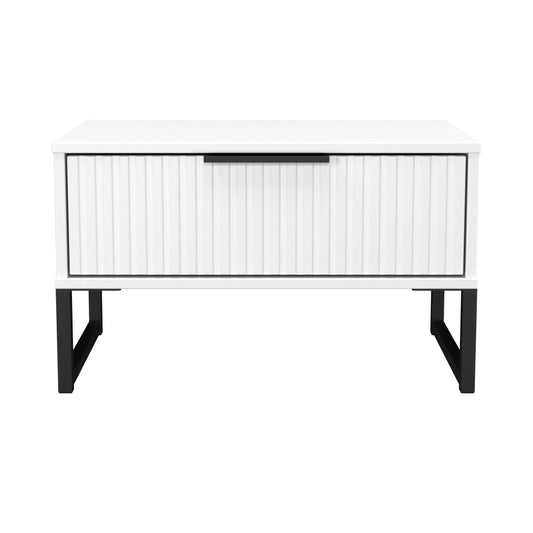 Fluted Side Table White 1 Drawer 58cm