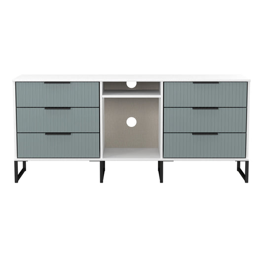 Fluted Large Sideboard Teal & White 2 Shelves 6 Drawers 152cm