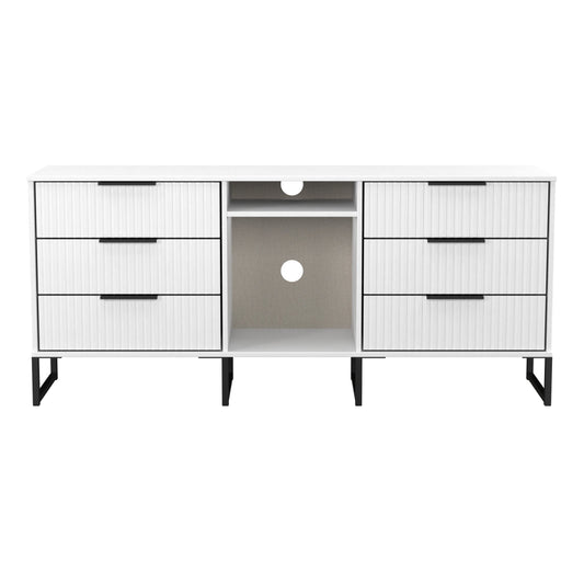 Fluted Large Sideboard White 2 Shelves 6 Drawers 152cm