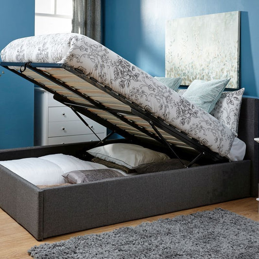 Winston King Size Ottoman Bed Fabric Grey 5 x 7ft