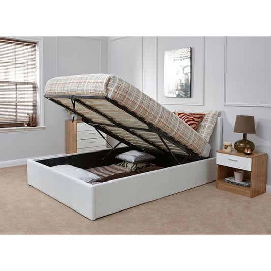 Winston Small Double Ottoman Bed Faux Leather White 4 x 7ft