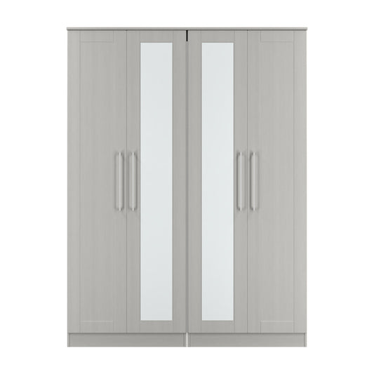 York Tall Mirror Wardrobe Grey 4 Doors 2 Shelves 148cm