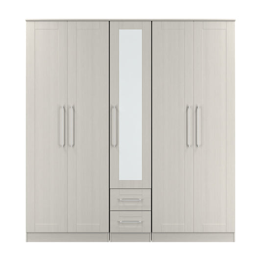 York Tall Mirror Wardrobe Grey 5 Doors 2 Shelves 2 Drawers 185cm