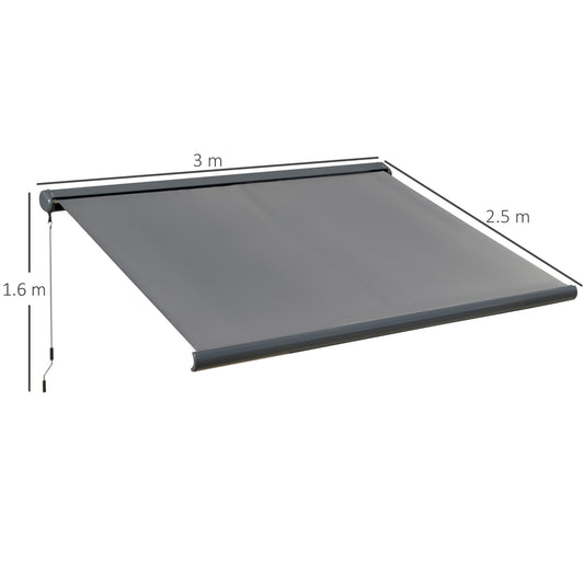 Awning Canopy Manual Retractable Porch Sun Shade Shelter 3 x 2m Grey