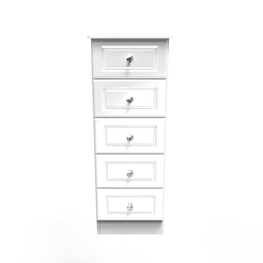 Beverley Tall Tallboy White 5 Drawers 108cm