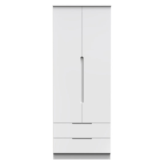 Milan Tall Wardrobe White 2 Drawers 196cm