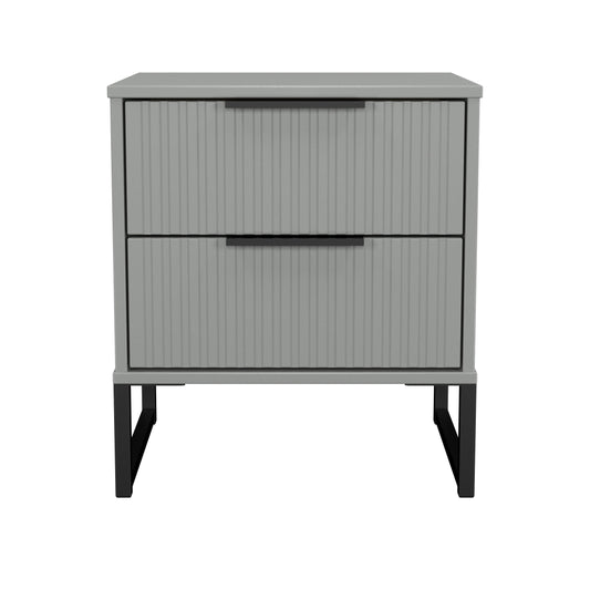 Fluted Bedside Table Grey 2 Drawers 60cm