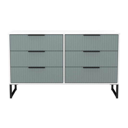 Fluted Large Chest of Drawers Teal & White 6 Drawers 115cm