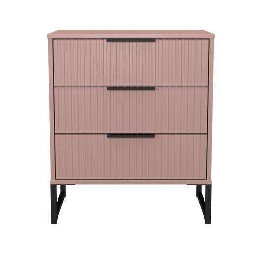 Fluted Chest of Drawers Pink 3 Drawers 76cm