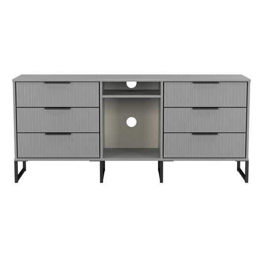 Fluted Large Sideboard Grey 2 Shelves 6 Drawers 152cm