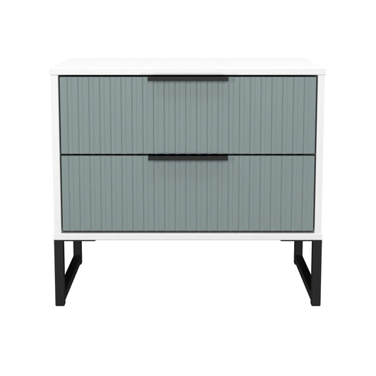 Fluted Side Table Teal & White 2 Drawers 60cm