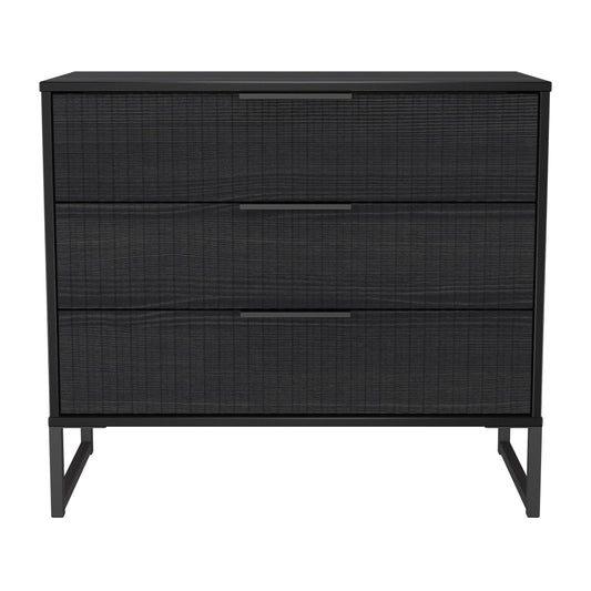 Fluted Chest of Drawers Black 3 Drawers 77cm