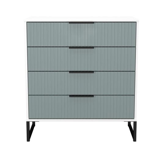 Fluted Chest of Drawers Teal & White 4 Drawers 93cm