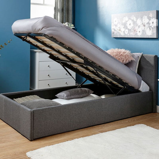 Side Lift Small Double Ottoman Bed Metal & Wood Natural 4 x 7ft