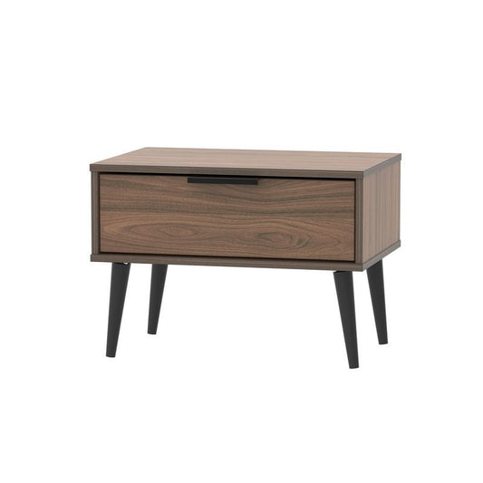 Bedside Table 2 Drawer Unit Zig Zag Design Nightstand w/ Black Metal Handles Melamine Finish