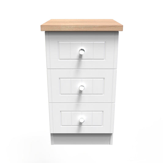 Worcester Bedside Table White & Light Oak 3 Drawers 37cm