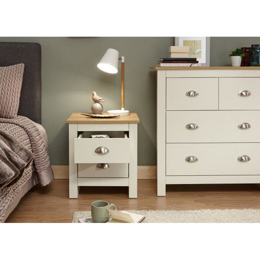Warwick Bedside Table Cream & Oak 2 Drawers 40cm