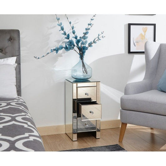 Venetian Slim Bedside Table Mirrored 3 Drawers