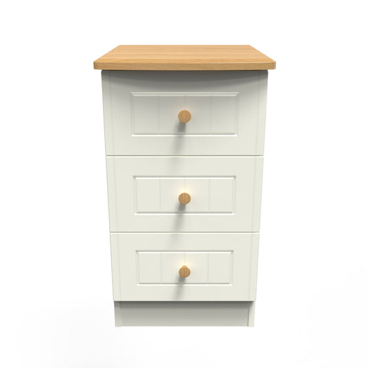 Warwick Bedside Table Cream & Oak 3 Drawers 40cm