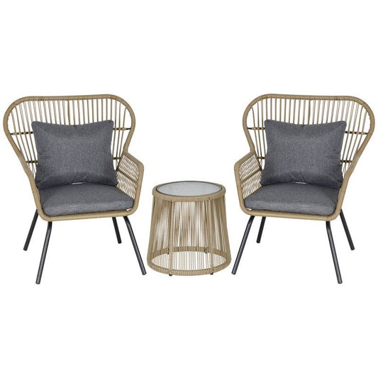 Outsunny 3 PCS PE Rattan Outdoor Conservatory Dining Set 2 Chairs Coffee Table Bistro Garden w/ Cushio...