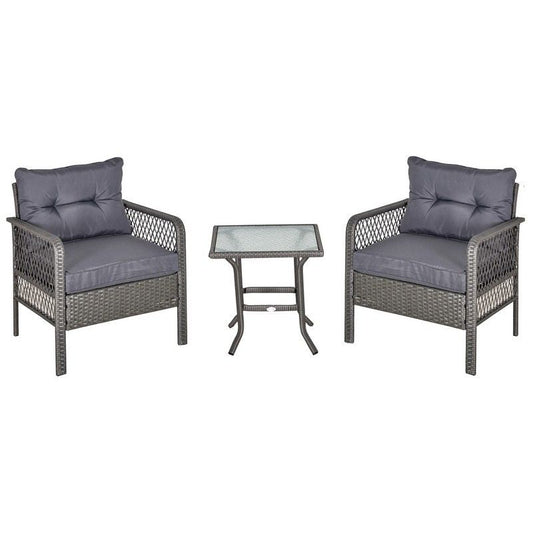 Outsunny 2-Seater Chair Bistro Set Garden Patio Table & Chair Black Rattan Furniture Grey