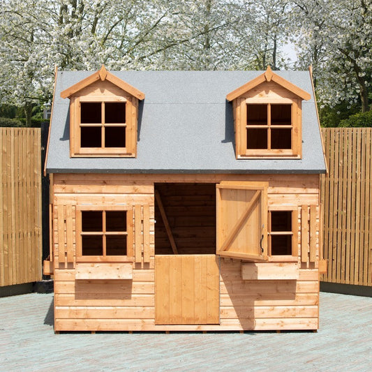 Shire Hatters House 6' 6" x 8' 2" Reverse Apex Children's Playhouse - Premium Dip Treated Shiplap