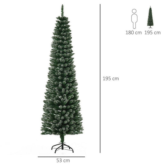 Homcom 6 Foot Artificial Snow Dipped Christmas Tree Xmas Pencil Tree with Foldable Black Stand