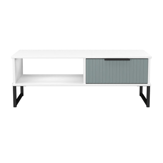 Fluted Coffee Table Teal & White 1 Shelf 1 Drawer 92cm
