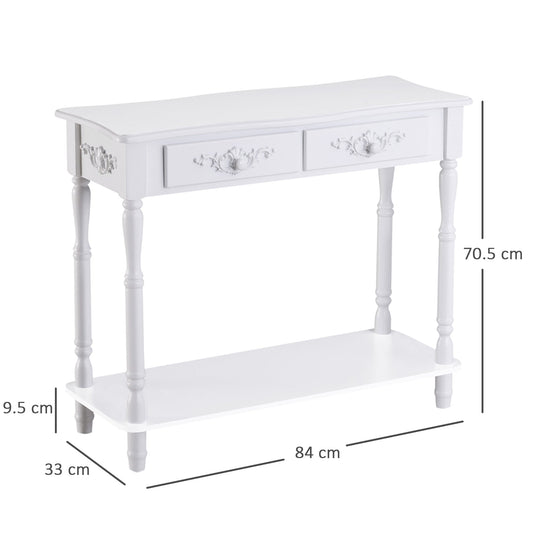 Console Table Modern Sofa Side Desk with Storage Shelves Drawers for Living Room Entryway Bedroom White
