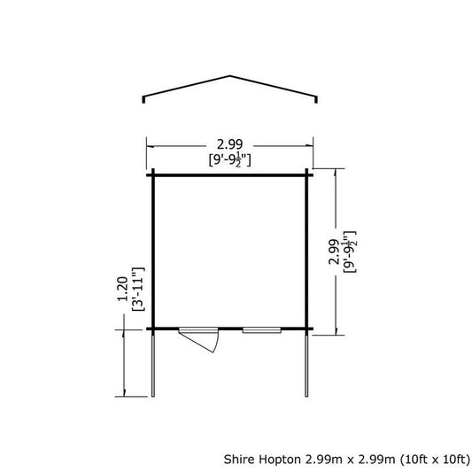 Shire Hopton 9' 9" x 9' 9" Apex Log Cabin - Premium 28mm Cladding Tongue & Groove