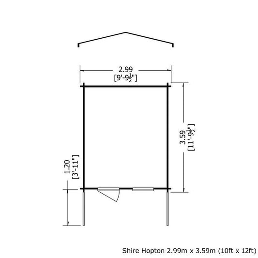 Shire Hopton 9' 9" x 11' 9" Apex Log Cabin - Premium 70mm Cladding Tongue & Groove