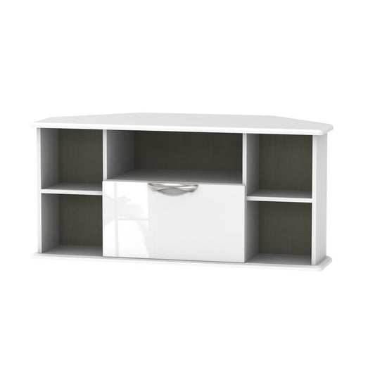 Weybourne Corner TV Unit White 5 Shelves 1 Drawer