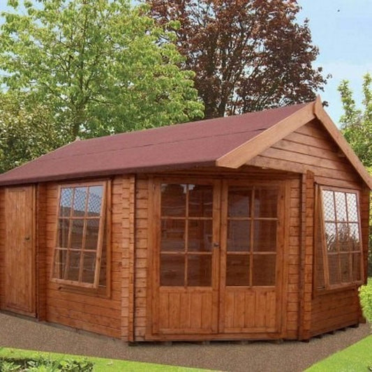 Shire Marlborough 11' 9" x 9' 9" Reverse Apex Log Cabin - Premium 34mm Cladding Tongue & Groove