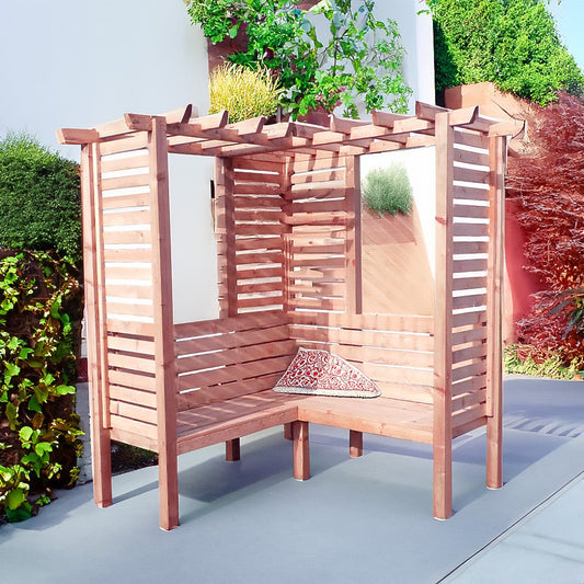 Scandinavian Redwood Garden Arbour by Charles Taylor - 2 Seats Grey Cushions