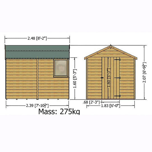 Shire Value 8' 1" x 6' 6" Pent Shed - Premium Coated Overlap