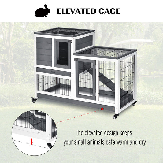 PawHut Rabbits Indoor Fir Wood Lift-Top Hutch-Grey and White