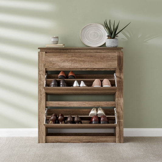 Homcom Shoe Cabinet Storage Cupboard 2-Tier Wood Tipping Bucket Modern Hall Organizer With Drawer Adju...