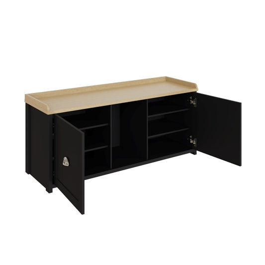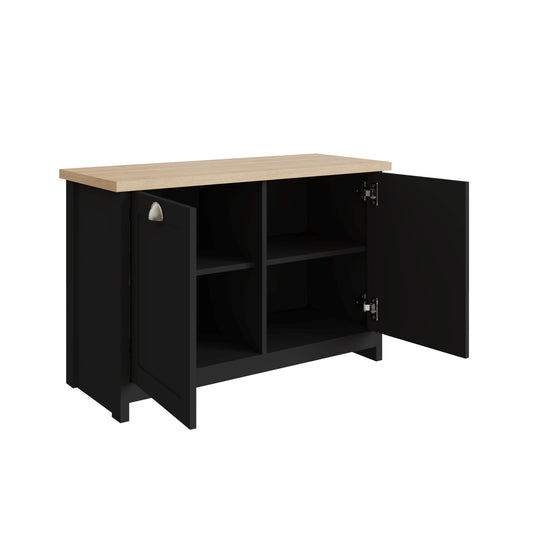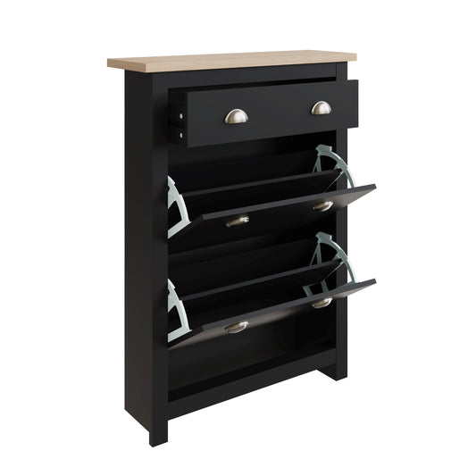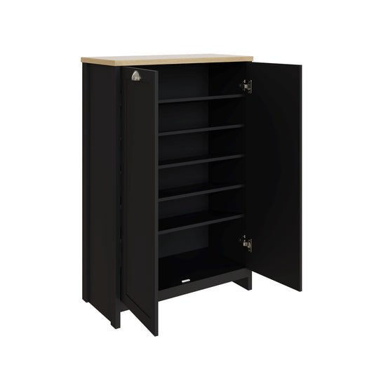 Lancaster Shoe Storage Black & Oak 2 Doors 4 Shelves