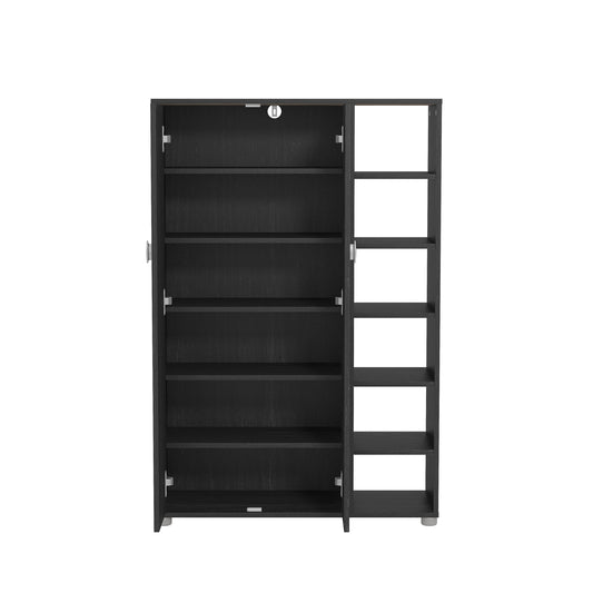 Bideford Tall Shoe Storage Black 2 Doors 12 Shelves