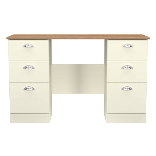 Victoria Desk Cream & Light Oak 6 Drawers 128cm