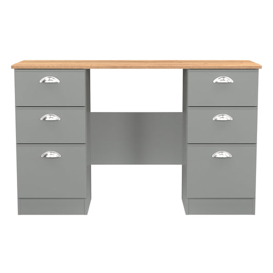 Victoria Desk Grey & Light Oak 6 Drawers 128cm